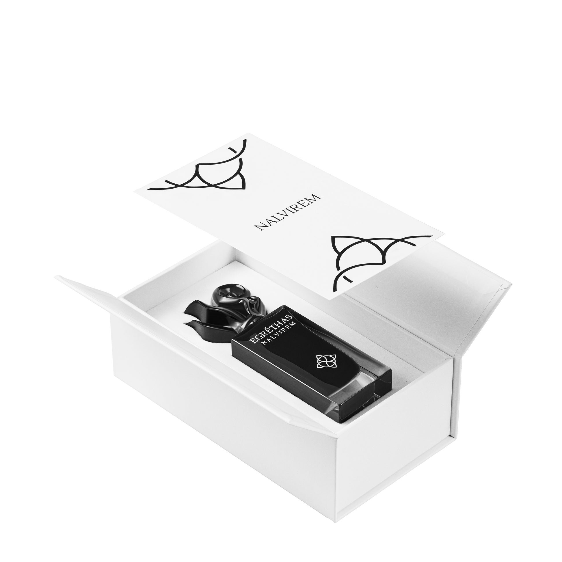 NALVIREM opens with raw intensity, smoke leather and rum, before softening into resinous warmth and sweet balsams. Primal yet refined, it evokes charisma and controlled danger, an untamed heart wrapped in elegance.